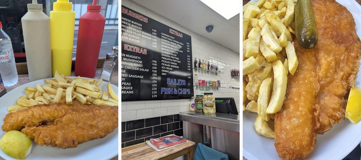 Baileys stands as a quintessential fish 'n' chips shop nestled in the heart of London. This casual eatery focuses on providing classic British fare, offering fish so crispy it crackles, and chips that are perfectly golden and fluffy. With a welcoming counter-service setup, it's ideal for those looking to indulge in a hearty meal amidst a cozy atmosphere. Whether you're dining in or grabbing a takeaway, every detail—from the homemade tartar sauce to generous portions—delivers a delightful experience. Baileys is where locals gather for a quick bite or to settle in for a long chat over delicious food, making it a must-visit for both residents and tourists alike.