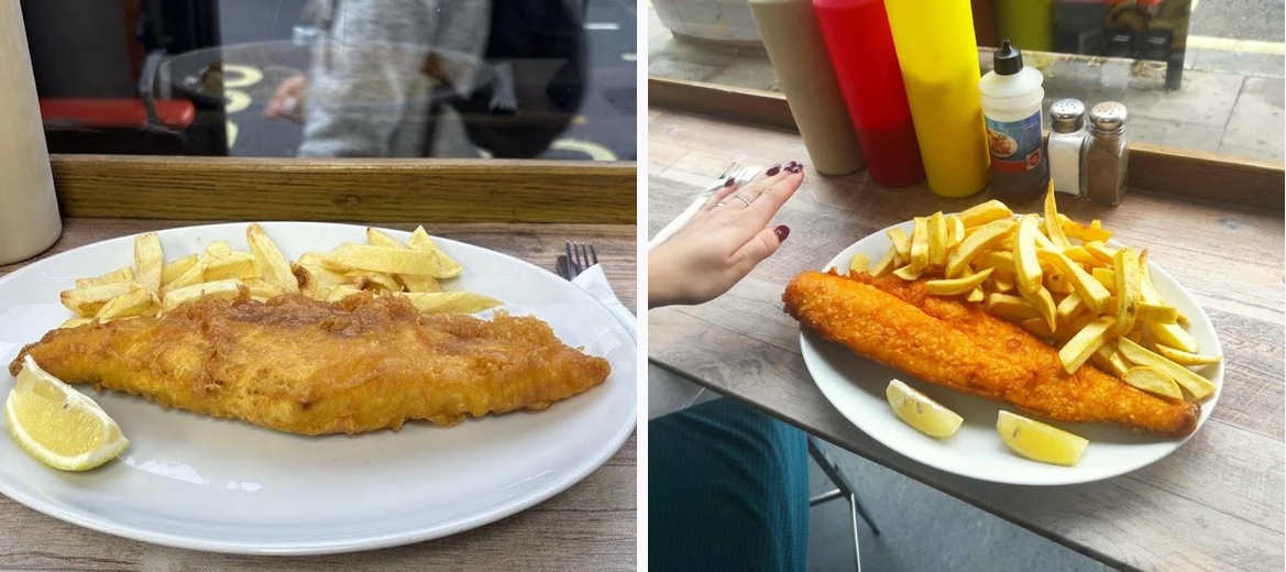 The food was magnificent for me and my boyfriend. The haddock we ordered was freshly fried in batter, so did for chips. The dish smelled really good, everything in place and around the tables were clean. The homemade tatar sauce was divine for us. The staff (we think it was an owner) was kind and friendly. The price for humongous fish that was served for 2 people, was ok. Small local restaurant, but at the same time cosy and spacious. Best regards, two metalheads.