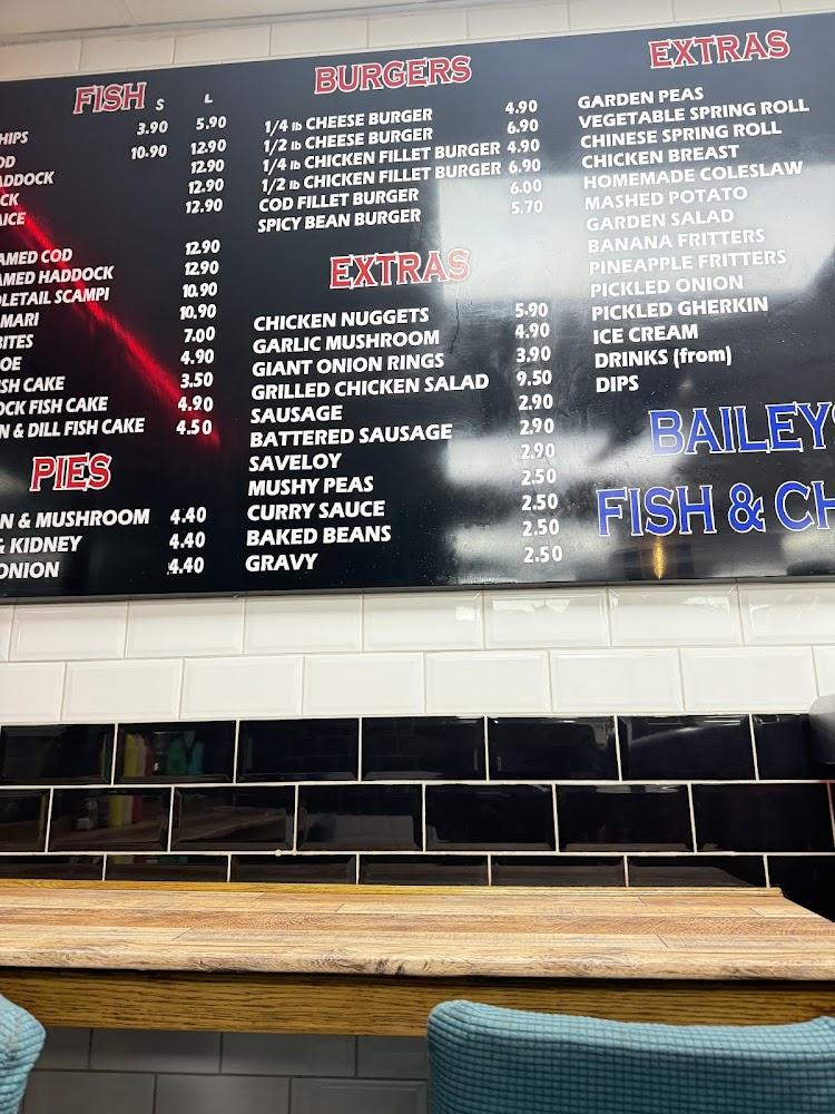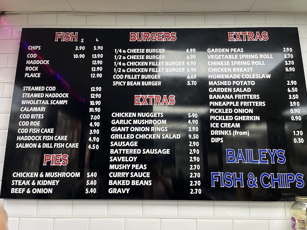 Located at 115 Dawes Road, London SW6 7DU, Baileys captures the spirit of traditional British dining. This vibrant neighborhood eatery attracts a diverse crowd—from tourists exploring Chelsea to university students seeking comfort food. The space exudes a relaxed vibe with a casual atmosphere, where the focus is always on the food. Accessibility is a strong suit here, with wheelchair-friendly features that ensure ease of access for all. Plus, the location is convenient, right next to bus stop lines 211 and 295, making it simple to swing by for a meal. Baileys shows commitment to quality with an extensive menu, featuring various fish options such as cod and haddock, complemented by sides that set this chippy apart. With friendly staff members always ready to serve, it's no wonder patrons feel at home in this cozy spot. It's a place where conversations flow as freely as the tartar sauce, creating a lively community atmosphere. The shop boasts a seating area, making it perfect for families, friendships, or a solo indulgence, all while enjoying freshly prepared food day in and day out.